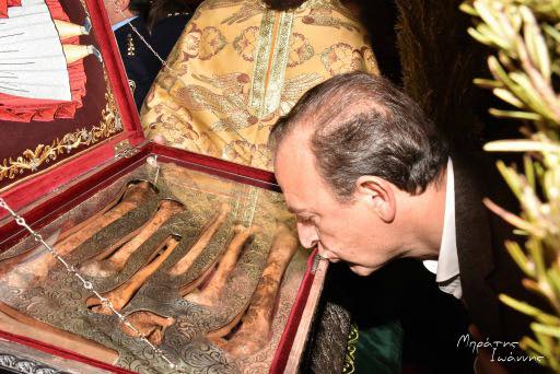 Ανήμερα της εορτής του Αγίου Γεωργίου, πραγματοποιήθηκε ἡ Λιτάνευσις τῶν Ἱερῶν Λειψάνων τοῦ Ἁγίου καί ἡ ἐναποθεσίς τους στόν Ἱερό Μητροπολιτικό Ναό τοῦ Ἁγίου Ἀθανασίου, ὅπου θά παραμείνουν μέχρι τό ἀπόγευμα τῆς Παρασκευής 18 Ἰανουαρίου, ὁπότε καί θά ἐπιστρέψουν στόν Ἱερό Προκυνηματικό Ναό τοῦ Ἁγίου στήν Πλατεία Πάργης.