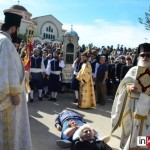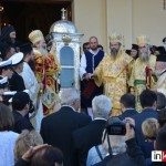 Την πανηγυρική πολυαρχιερατική θεία λειτουργία, στην οποία χοροστάτησαν οι Σεβασμιώτατοι Μητροπολίτες Κεφαλληνίας Δημήτριος, Δωδώνης Χρυσόστομος, Λευκάδος και Ιθάκης Θεόφιλος και Άρτας Καλλίνικος, στην μεγάλη εκκλησία, ακολούθησε η λιτάνευση του σκηνώματος του Αγίου, με το Λύκειο Ελληνίδων Παράρτημα Αργοστολίου και τις φιλαρμονικές της ΚΕΔΗΚΕ «Διονύσιος Λαυράγκας» και Σάμης «Θέμος Αμούργης», το τμήμα προσκόπων, τους φοιτητές της ΑΕΝ, να συνοδεύουν.