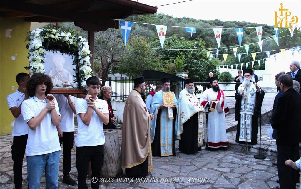 Τέθηκε σε προσκύνηση μυροβλίζον απότμημα των Ιερών Λειψάνων του Αγίου, δωρεά προς τα Αντικύθηρα του Πανοσ. Αρχιμανδρίτου Μιχαήλ Σταθάκη (ΙΑΑ/Ι.Ν. Αγ. Γεωργίου Ν.Ψυχικού). Ο Ναός του Αγίου στολίσθηκε με ναυτικές σημαίες (καθότι προστάτης των ναυτικών), που δώρισε ο Εθνικός Ευεργέτης κ. Πάνος Λασκαρίδης, εκ των μεγάλων χορηγών των ερευνών στο αρχαίο Ναυάγιο των Αντικυθήρων, που ξεκίνησαν σήμερα και θα διαρκέσουν 1 μήνα.