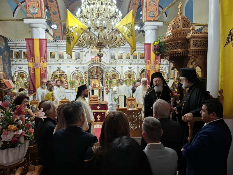 Ανήμερα της εορτής, Παρασκευή 26 Σεπτεμβρίου 2025, ο Θεοφιλέστατος Επίσκοπος Σκοπέλου κ. Νικόδημος μετέβη στον ίδιο Ενοριακό Ι. Ναό, όπου χοροστάτησε στον Όρθρο, προέστη στη Θεία Λειτουργία και κήρυξε τον θείο λόγο.