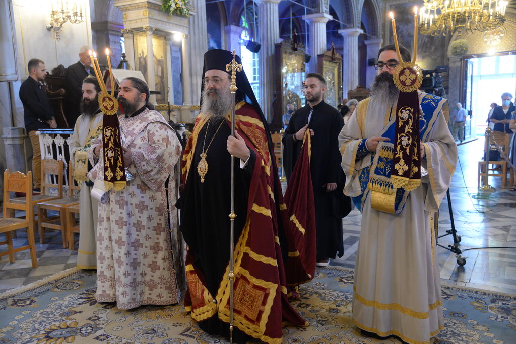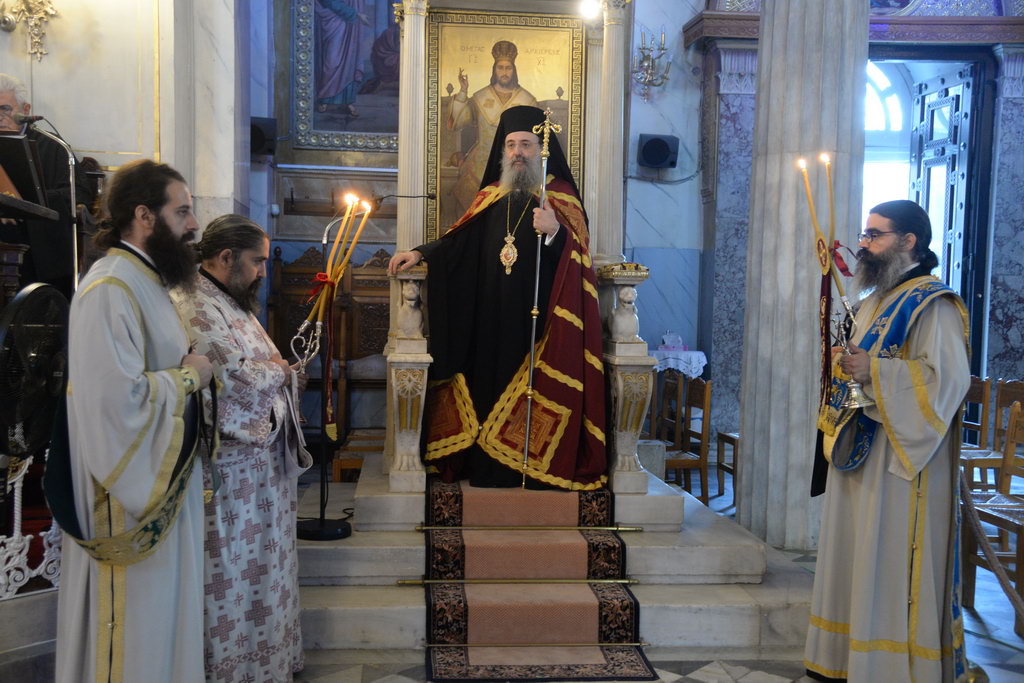 Την Ιερά Αγρυπνία τέλεσε ο Αρχιμ. π. Αρτέμιος Αργυρόπουλος, Πρωτοσύγκελλος της Ιεράς Μητροπόλεως, ο οποίος εν πληθούση Εκκλησία, κήρυξε τον θείο λόγο.
