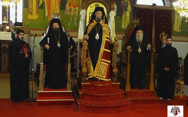 Ειδικότερα, ο φετινός εορτασμός ξεκίνησε το απόγευμα του Σαββάτου με την τέλεση του πανηγυρικού Τρισαρχιερατικού Εσπερινού μετ’ αρτοκλασίας, στον οποίο χοροστάτησε, ως προσκεκλημένος του σεπτού Ποιμενάρχη μας, ο Θεοφιλέστατος Επίσκοπος Τανάγρας κ. Απόστολος. Στον Εσπερινό συμμετείχαν επίσης ο Βοηθός Επίσκοπος της Ιεράς Μητροπόλεώς μας, Θεοφιλέστατος Επίσκοπος Λακεδαιμονίας κ. Θεόφιλος, και πλειάδα κληρικών από την μητροπολιτική μας περιφέρεια.