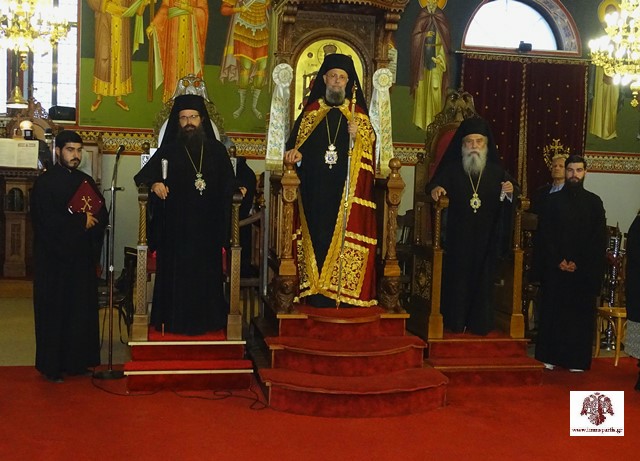 Ειδικότερα, ο φετινός εορτασμός ξεκίνησε το απόγευμα του Σαββάτου με την τέλεση του πανηγυρικού Τρισαρχιερατικού Εσπερινού μετ’ αρτοκλασίας, στον οποίο χοροστάτησε, ως προσκεκλημένος του σεπτού Ποιμενάρχη μας, ο Θεοφιλέστατος Επίσκοπος Τανάγρας κ. Απόστολος. Στον Εσπερινό συμμετείχαν επίσης ο Βοηθός Επίσκοπος της Ιεράς Μητροπόλεώς μας, Θεοφιλέστατος Επίσκοπος Λακεδαιμονίας κ. Θεόφιλος, και πλειάδα κληρικών από την μητροπολιτική μας περιφέρεια.