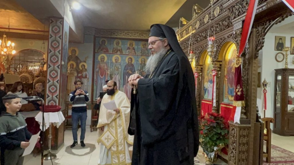 Μετά την απόλυση της Θείας Λειτουργίας άκουσε τα Κάλαντα των Χριστουγέννων από τα παιδιά των Κατηχητικών Σχολείων της ενορίας και ευχήθηκε στο εκκλησίασμα Καλά Χριστούγεννα και πλούσια την ευλογία του τεχθέντος Κυρίου ημών Ιησού Χριστού.