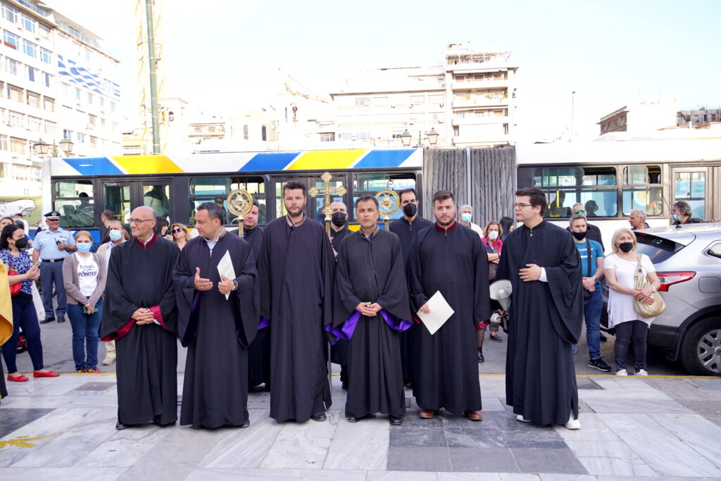 Ιερά Λείψανα των Αγίων Χαραλάμπους, Ιωάννου του Νηστευτού και Παρθενίου, Επισκόπου Λαμψάκου υποδέχθηκε χθες Παρασκευή 13 Μαΐου 2022 η πόλη του Πειραιά στον Μητροπολιτικό Ιερό Ναό Αγίων Κωνσταντίνου και Ελένης Πειραιώς στο πλαίσιο των Εκδηλώσεων «Κωνσταντίνεια 2022» που φέτος είναι αφιερωμένα στην συμπλήρωση 100 ετών από την Μικρασιατική Καταστροφή.