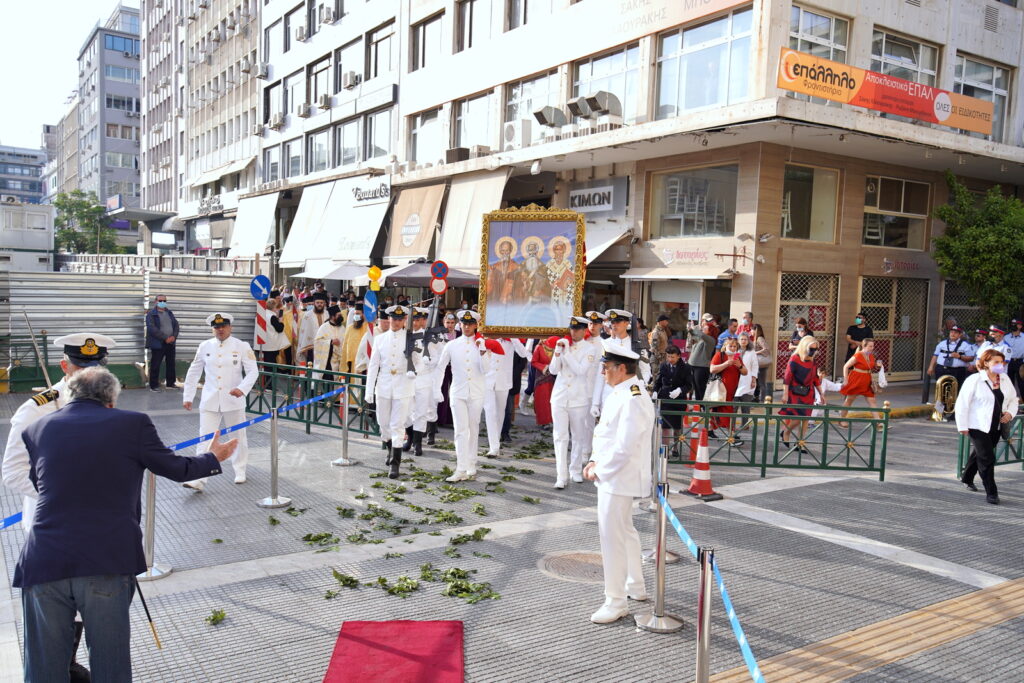 Κατά την υποδοχή των Ιερών Λειψάνων, τον Δήμαρχο Πειραιά εκπροσώπησε ο Αντιδήμαρχος προσόδων κ.Γρηγόρης Καψοκόλης, ενώ παρέστησαν οι Φιλαρμονικές του Λιμενικού Σώματος και του Δήμου Πειραιά, το Άγημα του Λιμενικού Σώματος, η αδελφότητα Κρητών «Η ΟΜΟΝΟΙΑ», εθελόντριες του Ελληνικού Ερυθρού Σταυρού και αντιπροσωπεία σχολείων.