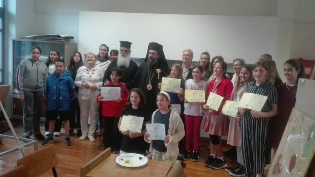 Τέλος, ὁ Σεβασμιώτατος ἐπέδωσε τά ἀριστεῖα καί τίς βεβαιώσεις στούς μαθητές καί ἀκολούθησε δεξίωση.