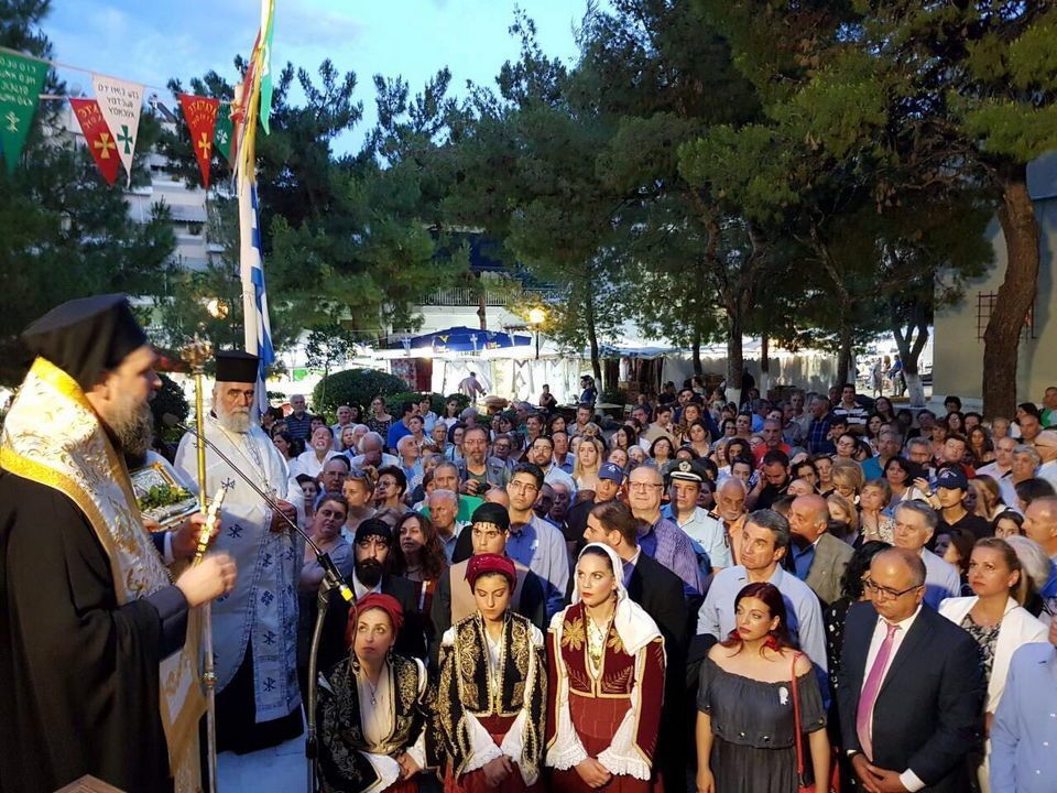 Στη συνέχεια πραγματοποιήθηκε μεγαλοπρεπής λιτάνευση της Ιεράς Εικόνας της Αγ. Τριάδος και του Ιερού Λειψάνου του Αγ. Λουκά του Ιατρού που φιλοξενείται αυτές τις μέρες στο Ναό, υπό τους ήχους της φιλαρμονικής και τη συνοδεία κληρικών της Ιεράς Μητροπόλεως, τοπικών αρχόντων και πλήθους πιστών.