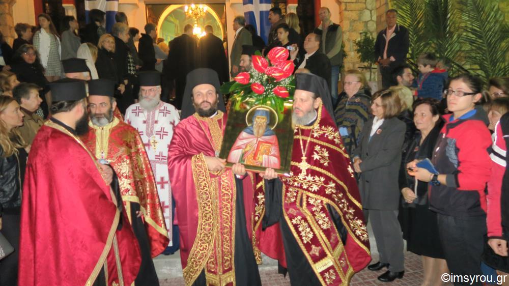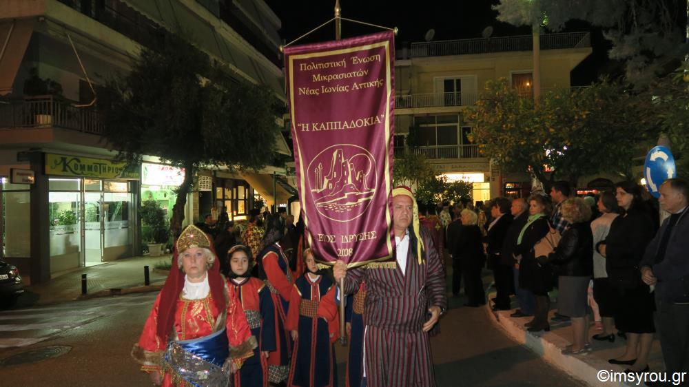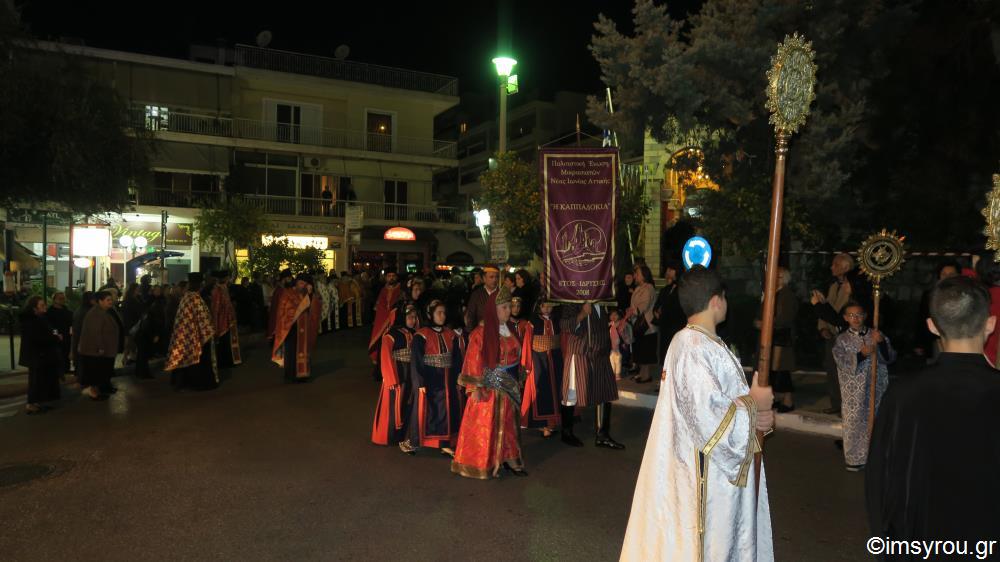 Μετά το πέρας του Εσπερινού, επακολούθησε λιτάνευση του ιερού σκηνώματος και της εφεστίου Εικόνος του Αγίου Νεομάρτυρος Γεωργίου του Νεαπολίτου στον Περισσό, πλαισιούμενη από τη Φιλαρμονική του Δήμου, με επικεφαλής αυτής τους Αρχιερείς και συλλιτανεύοντας το Δήμαρχο Περισσού και σύσσωμο το Δημοτικό Συμβούλιο, τον Πολιτιστικό Σύλλογο Καππαδοκών και το Χορευτικό του συγκρότημα, νέοι του οποίου έφεραν επί των ώμων το ιερό Λείψανο, και μέγα πλήθος πιστών.