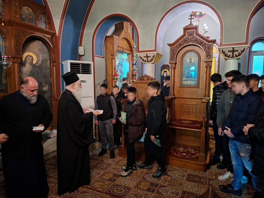 Μαθήτριες και μαθητές του Γυμνασίου Αθικίων, συνοδευόμενοι από καθηγητές τους, εκκλησιάστηκαν το πρωί της Τρίτης, 27 Ιανουαρίου 2026 στο Ιερό Μητροπολιτικό Παρεκκλήσιο της Αγίας Φωτεινής. Μετά το πέρας της Θ. Λειτουργίας ο Σεβ. Μητροπολίτης κ. Παύλος είχε την ευκαιρία να συνομιλήσει με τους μαθητές και να ακούσει τους προβληματισμούς τους. Τους ευχήθηκε καλή πρόοδο, προσέφερε ευλογίες και ευχαρίστησε εκ βάθους καρδίας τόσο τους μαθητές, όσο και τους καθηγητές τους για την επίσκεψη.