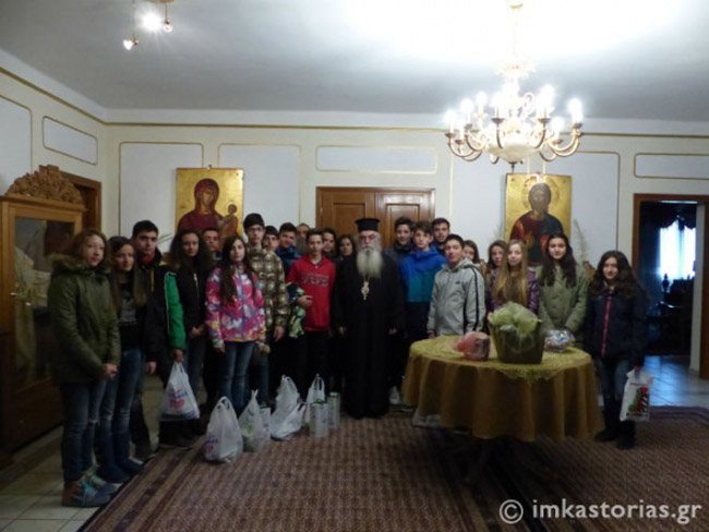 Μαθητές του 3ου Γυμνασίου Καστοριάς επισκέφτηκαν σήμερα, Πέμπτη 17 Δεκεμβρίου 2015, τον Σεβασμιώτατο Μητροπολίτη Καστορίας κ. Σεραφείμ, συνοδευόμενοι από την Καθηγήτριά τους κα Χαρίκλεια Βούρδα.