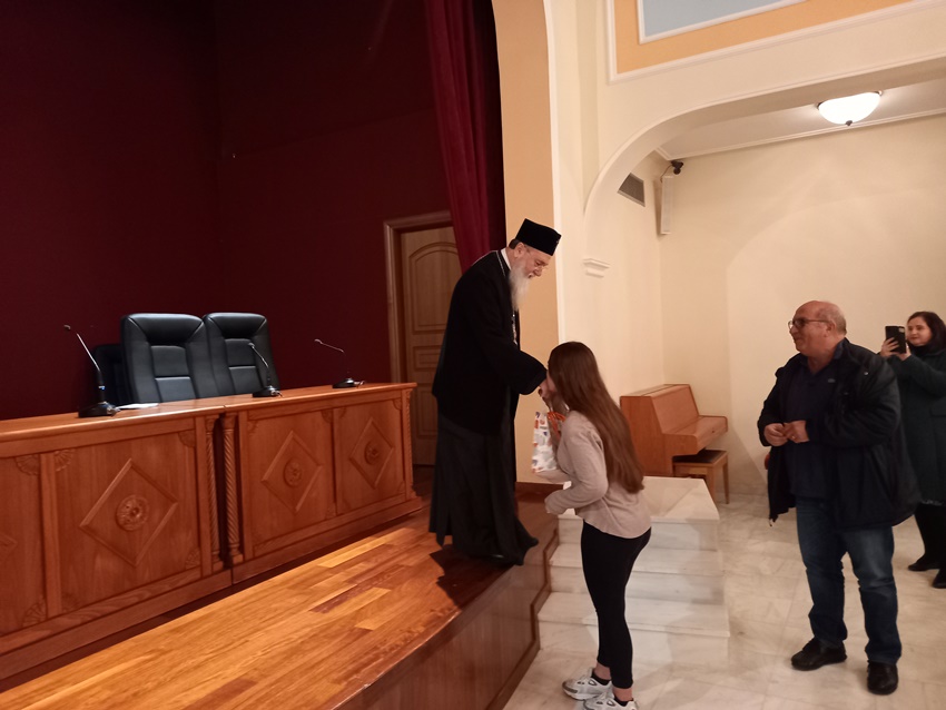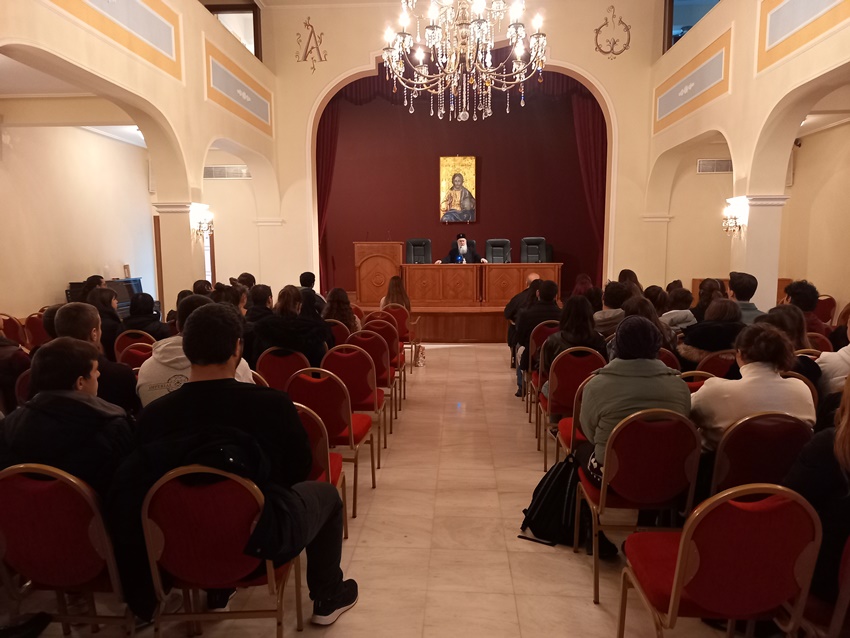 Ο Μητροπολίτης υποδέχτηκε με πολλή χαρά τους μαθητές και τους καθηγητές τους και με τον αναστάσιμο χαιρετισμό «χαίρετε», που χρησιμοποίησε ο Χριστός όταν, μετά την Ανάστασή Του, φανερώθηκε στους μαθητές Του δίδοντάς τους την ειρήνη Του.