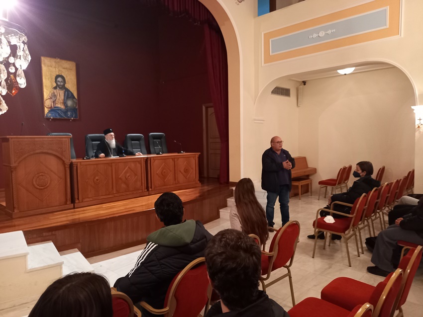 Πενήντα μαθητές και μαθήτριες της (Β΄) και (Γ΄) τάξης του 3ου Γενικού Λυκείου Κορίνθου επισκέφθηκαν, χθες, τον Μητροπολίτη Κορίνθου κ. Διονύσιο στην Κροκίδειο Αίθουσα της Ιεράς Μητρόπολης Κορίνθου.