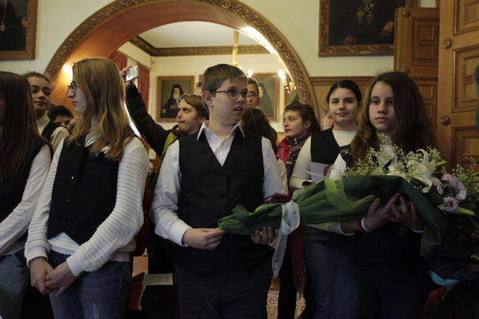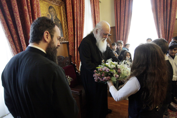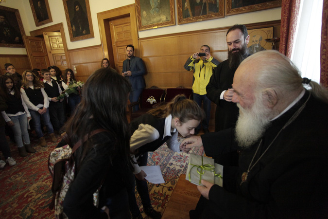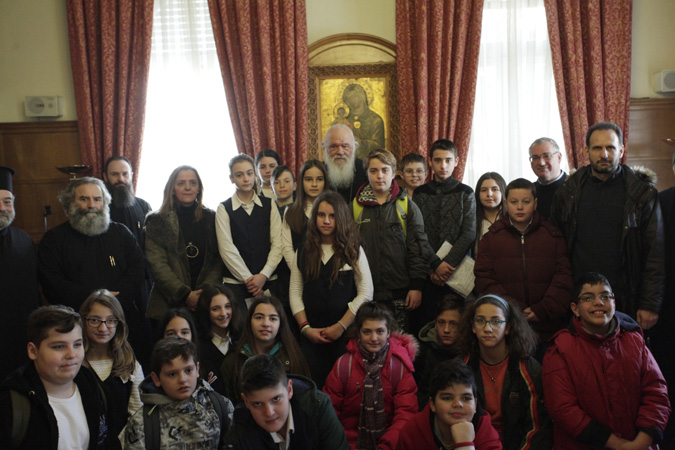 Τα παιδιά στο πλαίσιο εκπαιδευτικής εκδρομής επισκέφθηκαν τον ιερό Μητροπολιτικό Ναό των Αθηνών και αμέσως μετά συνάντησαν τον Αρχιεπίσκοπο, για να πάρουν την ευχή του και να ζητήσουν τις συμβουλές του. Ο Αρχιεπίσκοπος ευχήθηκε σε όλα τα παιδιά καλή πρόοδο στα μαθήματά τους και τα συμβούλευσε να προσπαθούν συνεχώς να αποκτούν γνώσεις. «Υπάρχει, όμως, και ένα άλλο είδος σοφίας εκτός από τις σπουδές» σημείωσε ο Αρχιεπίσκοπος, συμπληρώνοντας πως «πρόκειται για την άνωθεν Σοφία και όταν συνδυάζεται η κοσμική με την Σοφία του Θεού, τότε δημιουργείται ο χαρισματικός άνθρωπος».