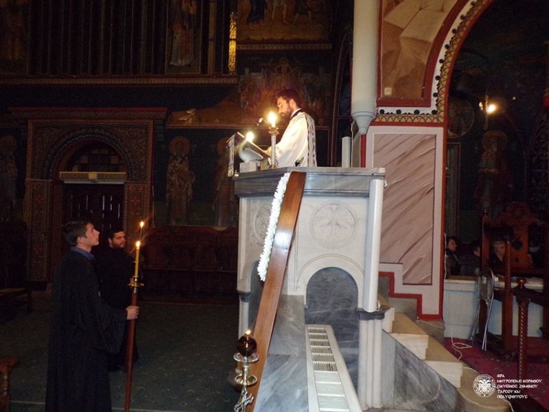 Ακολούθως και ώρα 11.00 π.μ. στον Καθεδρικό Ι. Ναό Απ. Παύλου, ο Σεβ. Μητροπολίτης μας κ. Διονύσιος, κήρυξε τον Θείο λόγο κατά την διάρκεια της Θείας Λειτουργίας και εν συνεχεία τέλεσε μαζί με το Ιερατείο της πόλεως Κορίνθου, την καθιερωμένη επίσημη Δοξολογία για την υποδοχή του Νέου (Πολιτικού) Έτους 2016, στην οποία προσήλθαν η Πολιτική και Στρατιωτική Ηγεσία του Τόπου μας και ο Λαός, μετά το πέρας της οποίας ο Σεβασμιώτατος αφού έκοψε την Αγιοβασιλειάτικη πίττα ευχήθηκε σε πολύ θερμό κλίμα στους παρισταμένους Καλή και Ευλογημένη Χρονιά.
