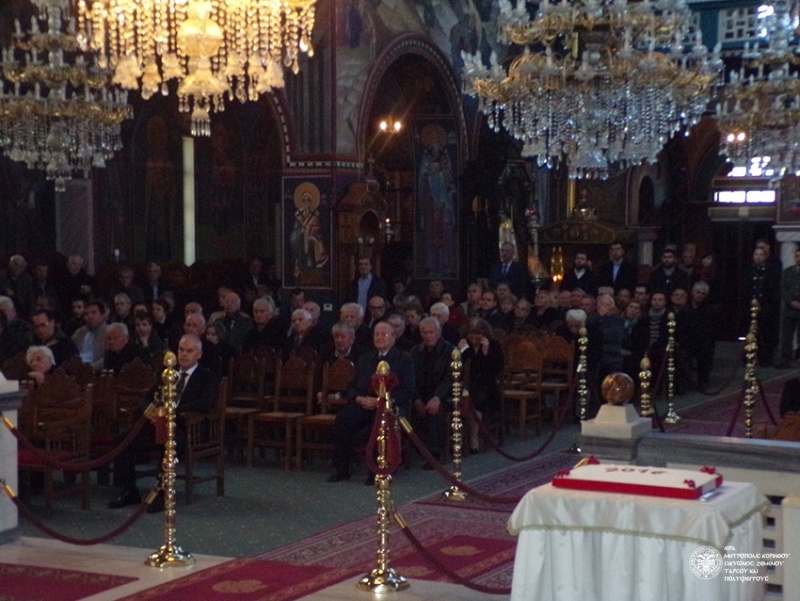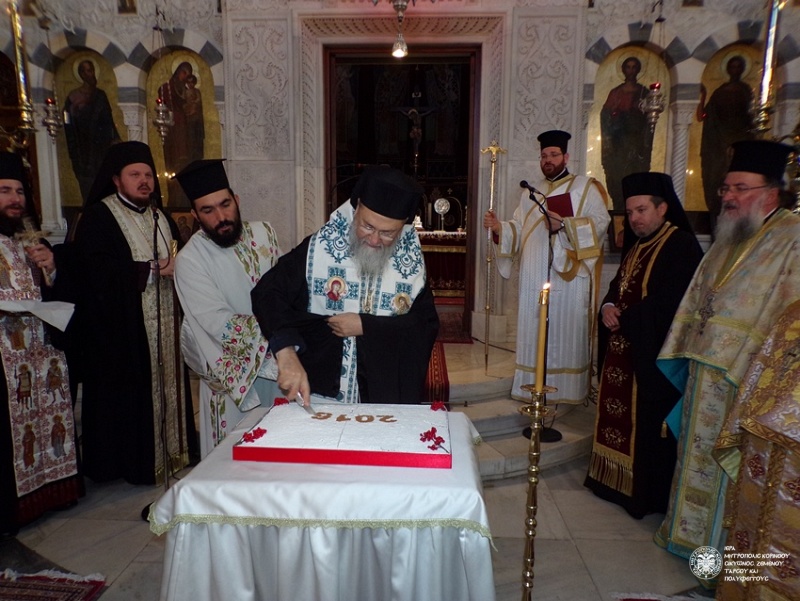 Μετά το πέρας των Ι. Ακολουθιών και την αγρυπνία οι ιερείς του Ι. Ναού έκοψαν την Βασιλόπιττα, που ευλόγησε και μοίρασε στους παρισταμένους ο Σεβ. Ποιμενάρχης μας, ευχόμενος η επερχόμενη νέα (Πολιτική) αυτή χρονιά να είναι η τελευταία που δοκιμάζεται η Χώρα μας και να είναι γεμάτη αγάπη, ειρήνη, υγεία και ευτυχία για όλον τον κόσμο.
