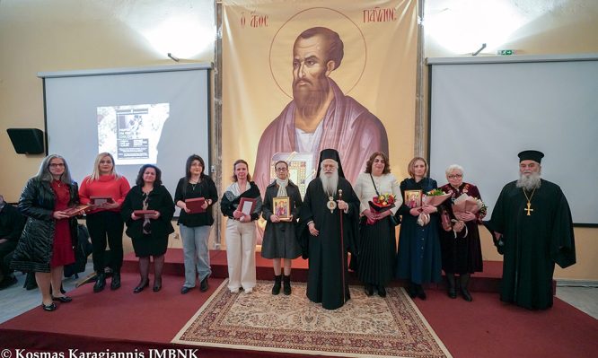 Στο τέλος ο Σεβασμιώτατος Μητροπολίτης κ. Παντελεήμων βράβευσε πέντε πολύτεκνες μητέρες, στις οποίες προσέφερε οικονομική βοήθεια και μία Ιερά Εικόνα ευχόμενος η Υπεραγία Θεοτόκος να ευλογεί, να σκέπει και να διαφυλάττει τις πολύτεκνες οικογένειες τους.