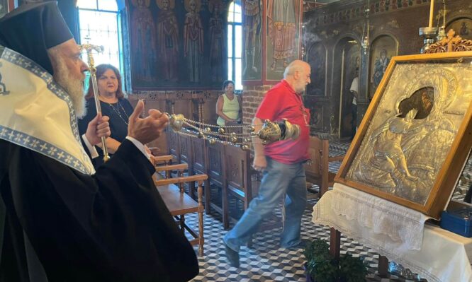 Ο Σεβασμιώτατος Μητροπολίτης μας κ. Τιμόθεος, το εσπέρας της Κυριακής 10 Αυγούστου 2025, υποδέχθηκε την ιερά και σεβασμία εικόνα της Παναγίας Γλυκοφιλούσης, η οποία φυλάσσεται στην Ιερά Μονή Μεγάλου Μετεώρου, στον Ιερό Ναό Κοιμήσεως Θεοτόκου Τ.Κ. Λοξάδος και στη συνέχεια χοροστάτησε στην ακολουθία του Εσπερινού και της ιεράς Παρακλήσεως προς την Υπεραγία Θεοτόκο. Στο τέλος […]