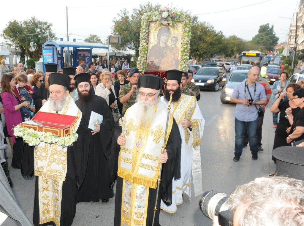 Με προεξάρχοντα τον μητροπολίτη Χαλκίδος κ. Χρυσόστομο, η πόλη υποδέχθηκε την εικόνα της Παναγίας της Οδηγητρίας από το Άργος Ορεστικό Καστορίας και την Τιμία Χείρα της Οσίας Σοφίας της Κλεισούρας.