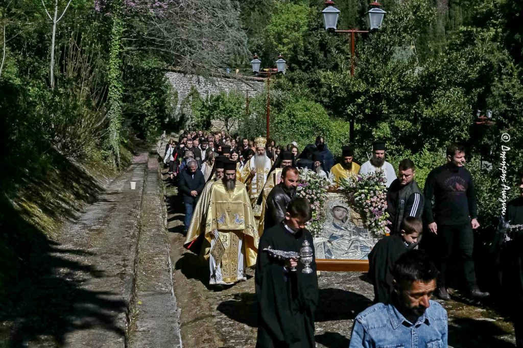 Μέσα στο κλίμα της αναστάσιμης χαράς της Διακαινησίμου Εβδομάδος, στην Ιερά Μονή Κοιμήσεως της Θεοτόκου Οσίου Αγάθωνος εορτάσθηκε σήμερα η Σύναξη της Εφεστίου Ιεράς Εικόνος της Μονής, της Παναγίας της Αγαθωνιτίσσης, της γλυκιάς Μητέρας όλων των Οσίων Πατέρων της Μονής.