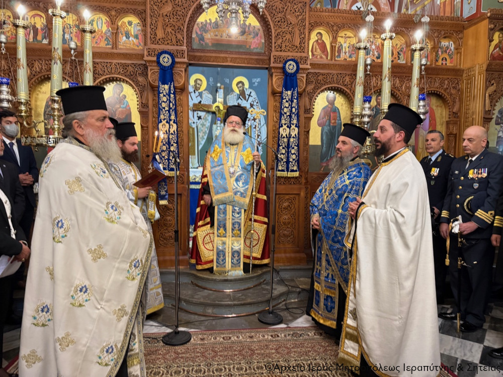 Η καθιερωμένη επίσημη Δοξολογία της εθνικής επετείου τελέσθηκε στον Ιερό Καθεδρικό Ναό Αγίας Αικατερίνης Σητείας, χοροστατούντος του Σεβασμιωτάτου Μητροπολίτου Ιεραπύτνης και Σητείας κ. Κυρίλλου, με τη συμμετοχή του Ιερού Κλήρου της πόλεως και την παρουσία των εκπροσώπων της Δημοτικής Αρχής, της Περιφέρειας Κρήτης, των Ενόπλων Δυνάμεων και των Σωμάτων Ασφαλείας, των Διευθυντών, των σημαιοφόρων και των παραστατών των σχολείων, καθώς και των συλλόγων και σωματείων της πόλης.