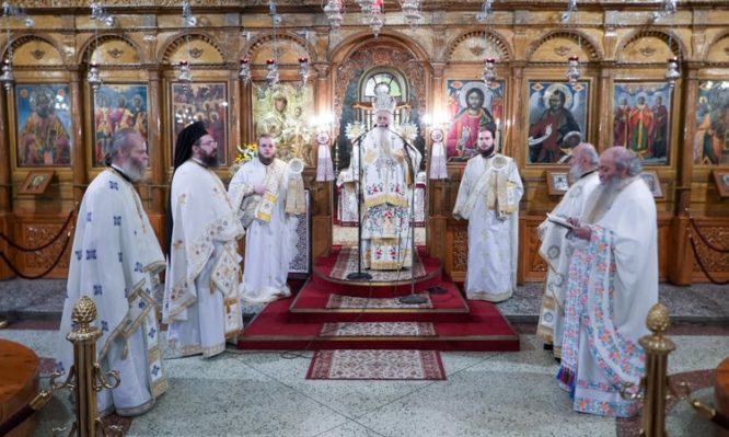 Την Κυριακή 18 Ιουνίου (Κυριακή των Αγιορειτών Πατέρων) ο Σεβασμιώτατος Μητροπολίτης Βεροίας, Ναούσης και Καμπανίας κ. Παντελεήμων λειτούργησε και κήρυξε τον θείο λόγο στον Ιερό Ναό Κοιμήσεως Θεοτόκου Ναούσης, όπου τιμάται ιδιαιτέρως η μνήμη των Αγιορειτών Πατέρων καθώς θησαυρίζεται η τιμία Κάρα του πολιούχου της πόλεως, Οσίου Θεοφάνους και υπάρχει το πρώτο παρεκκλήσιο του Οσίου Γερασίμου του Υμνογράφου – Μικραγιαννανίτου.