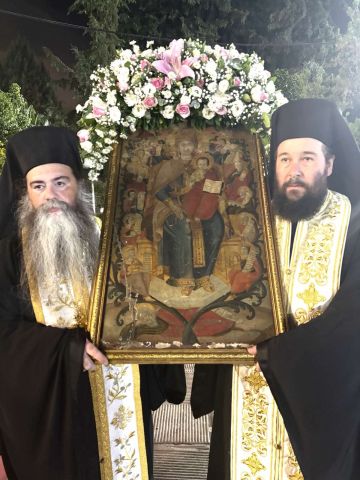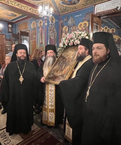 Στο πλαίσιο του εορτασμού και προ της ενάρξεως του Εσπερινού πραγματοποιήθηκε υποδοχή της Ιερά θαυματουργού Εικόνος της Παναγίας «Ρίζα του Ιεσσαί», όπου και τέθηκε προς προσκύνηση του πιστού λαού.