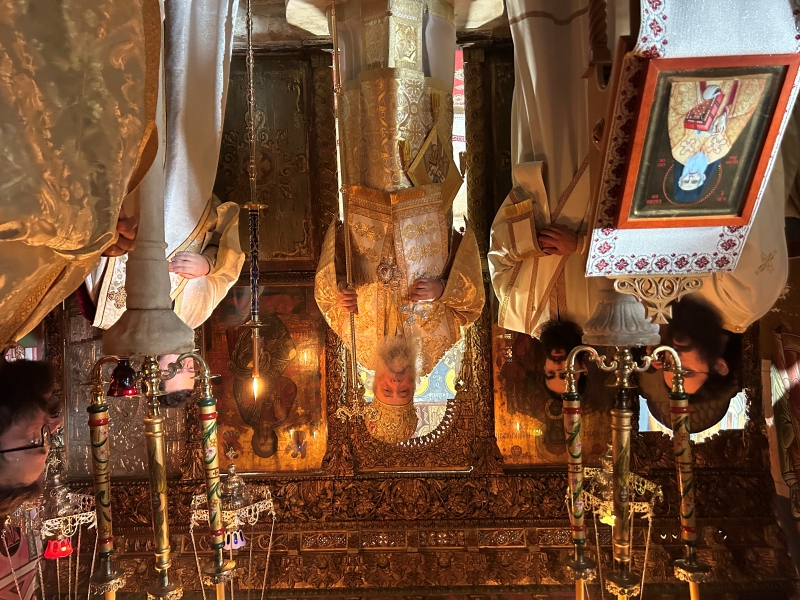 Το πρωί της Τετάρτης 15 Οκτωβρίου 2025, ο Σεβασμιώτατος χοροστάτησε στον Όρθρο στο Καθολικό της Ιεράς Μονής, ευλόγησε τους προσφερθέντες άρτους και προεξήρχε της Θείας Λειτουργίας.