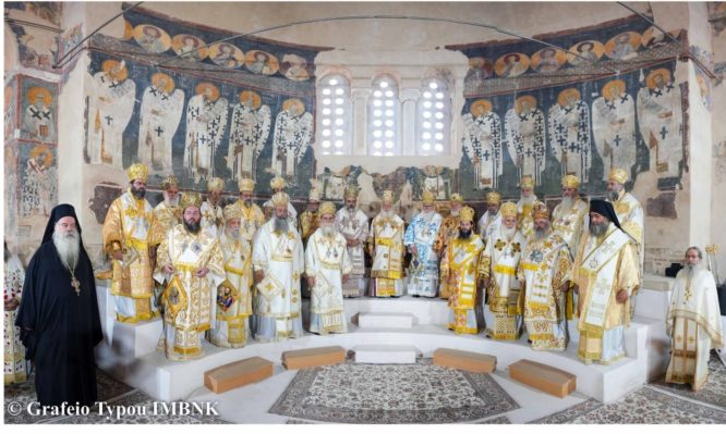 Συμμετείχαν επίσης οι Σεβασμιώτατοι Μητροπολίτες Σεβαστείας κ. Σεραφείμ, ο οποίος χοροστάτησε στον Όρθρο, Ξάνθης και Περιθεωρίου κ. Παντελεήμων, Άρτης κ. Καλλίνικος, Μαρωνείας και Κομοτηνής κ. Παντελεήμων, Κίτρους, Κατερίνης και Πλαταμώνος κ. Γεώργιος, Γρεβενών κ. Δαυίδ, Νέας Κρήνης και Καλαμαριάς κ. Ιουστίνος, Τρίκκης, Γαρδικίου και Πύλης κ. Χρυσόστομος, Σισανίου και Σιατίστης κ. Αθανάσιος, Λήμνου και Αγίου Ευστρατίου κ. Ιερόθεος, Λαγκαδά, Λητής και Ρεντίνης κ. Πλάτωνας, Πολυανής και Κιλκισίου κ. Βαρθολομαίος, ο Θεοφιλέστατος Επίσκοπος Ευμενείας κ. Ειρηναίος και ο Ποιμενάρχης μας, Σεβασμιώτατος Μητροπολίτης Βεροίας, Ναούσης και Καμπανίας κ. Παντελεήμων, ο οποίος προσκάλεσε αδελφικά τους Αγίους Αρχιερείς για να συμμετάσχουν στην σεμνή τελετή αναγνώσεως της Συνοδικής και Πατριαρχικής Πράξεως, ενώ συμπροσευχόμενος παρέστη ο Σεβασμιώτατος Μητροπολίτης Βεροίας (Χαλεπίου) και Αλεξανδρέττας κ. Εφραίμ (Πατριαρχείο Αντιοχείας) και ο Θεοφιλέστατος Επίσκοπος Ρηγίου κ. Ειρηναίος.