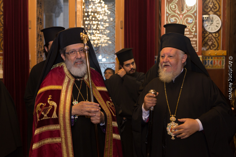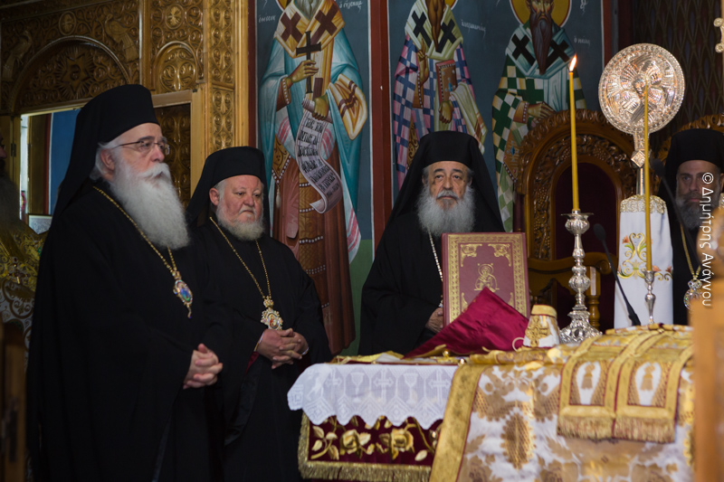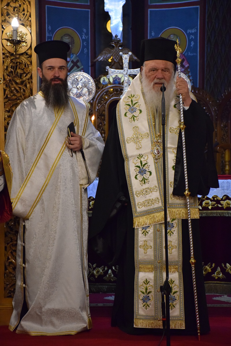 Στο Ιερό βήμα παρέστησαν συμπροσευχόμενοι: ο Μακαριώτατος Αρχιεπίσκοπος Αθηνών και Πάσης Ελλάδος κ.κ. Ιερώνυμος ο Β΄, οι Σεβασμιώτατοι Μητροπολίτες: Ιλίου, Αχαρνών και Πετρουπόλεως κ. Αθηναγόρας, Φωκίδος κ. Θεόκτιστος και ο Θεοφιλέστατος Επίσκοπος Θεσπιών κ. Συμεών, Πρωτοσύγκελος της Ιεράς Αρχιεπισκοπής Αθηνών.
