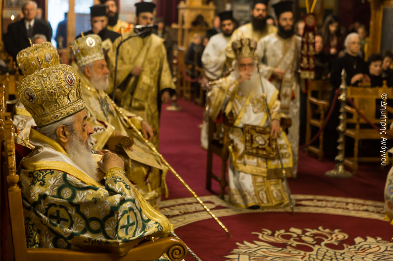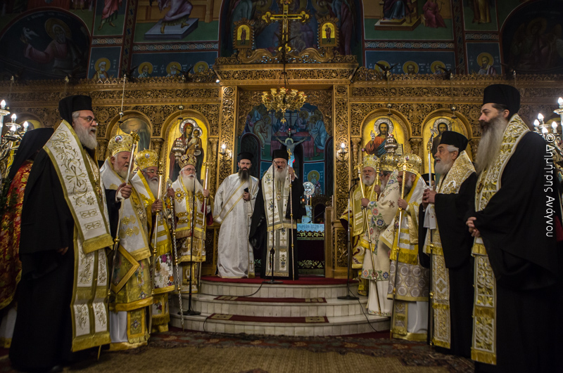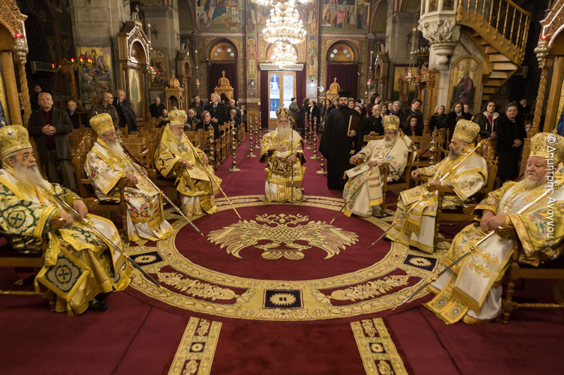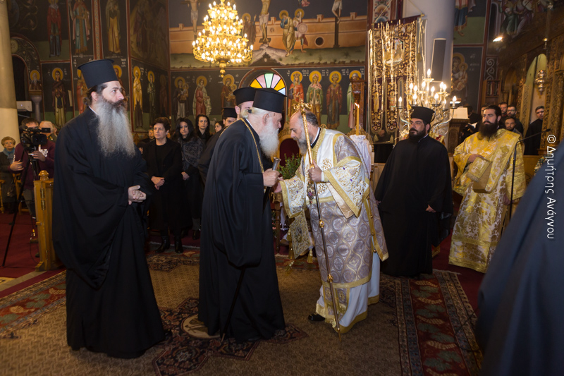 Ομοίως θέλω να ευχαριστήσω και όλους τους αδελφούς Αρχιερείς που ήλθαν σήμερα κι’ αυτοί εδώ με πολλές δυσκολίες. Οι μεν Στερεοελλαδίτες και οι Μακεδόνες από τα χιόνια, ο δε άγιος Σύρου από την φουρτουνιασμένη θάλασσα.