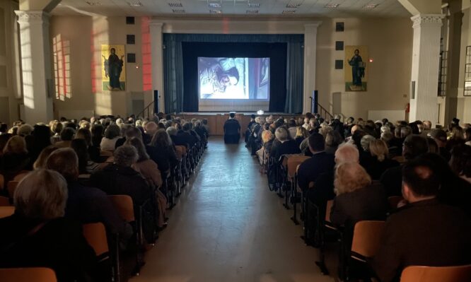 Η δεύτερη προβολή έγινε το απόγευμα, στο Πνευματικό Κέντρο της Ιεράς Μητροπόλεως, σε μια κατάμεστη αίθουσα, όπου πλήθος πιστών παρακολούθησε τη ζωή και τη διαδρομή του Αγίου Νεκταρίου, μέσα από τη δύναμη της τέχνης του κινηματογράφου.