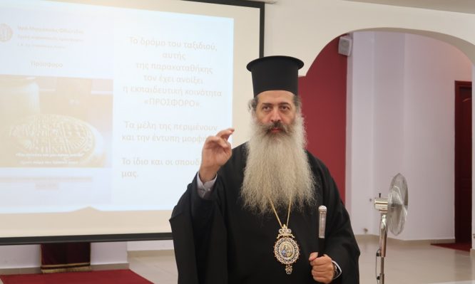 Ο Σεβασμιώτατος κ. Συμεών συνεχάρη τους ιερείς, το Εκκλησιαστικό Συμβούλιο και όλους τους συνεργάτες και εθελοντές της Ενορίας, οι οποίοι στηρίζουν αυτή τη Σχολή, τους Δασκάλους της Σχολής, τον κ. Κωνσταντίνο Τσαπάρα και την κ. Παρασκευή Ζούγρου, αλλά και όλους τους μαθητές και τις μαθήτριες, άνδρες και γυναίκες.