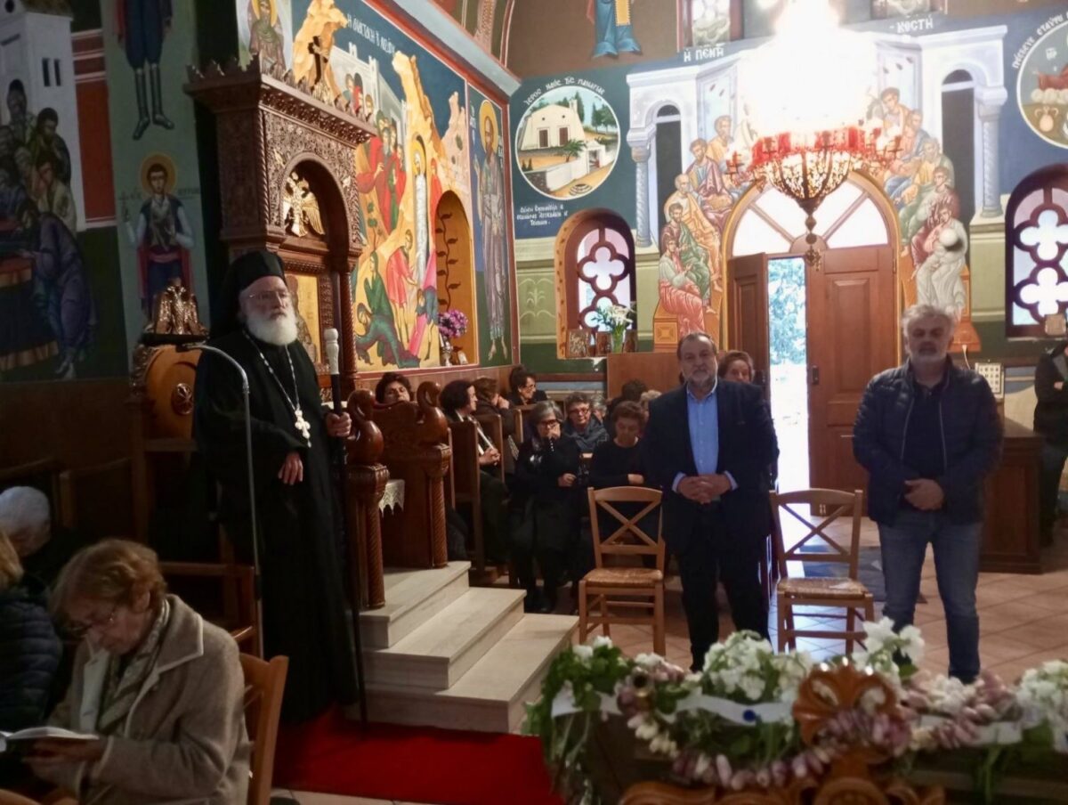 Με την δέουσα κατάνυξη τελέσθηκε το απόγευμα της Μεγάλης Τρίτης η Ακολουθία του Νυμφίου στον Ιερό Κοιμητηριακό Ναό Κοιμήσεως της Θεοτόκου στο Θραψανό Πεδιάδος. Ο Σεβ. Ποιμενάρχης μας χοροστάτησε εκ του παραθρονίου. Στην Ακολουθία, εψάλλη το τροπάριο της Κασσιανής από τον Ιεροψάλτη του Ναού και Δάσκαλο κ. Βασίλη Δαμιανάκη. Στον λόγο του ο Σεβασμιώτατος αναφέρθηκε στην μετάνοια και την νηστεία ενώ ευχήθηκε καλή συνέχεια της Αγίας και Μεγάλης Εβδομάδος και καλή την Αγία Ανάσταση. Μεταξύ άλλων παρέστησαν ο Δήμαρχος Μινώα Πεδιάδος κ. Βασίλης Κεγκέρογλου και ο Αντιδήμαρχος κ. Μιχάλης Σαμωνάκης.