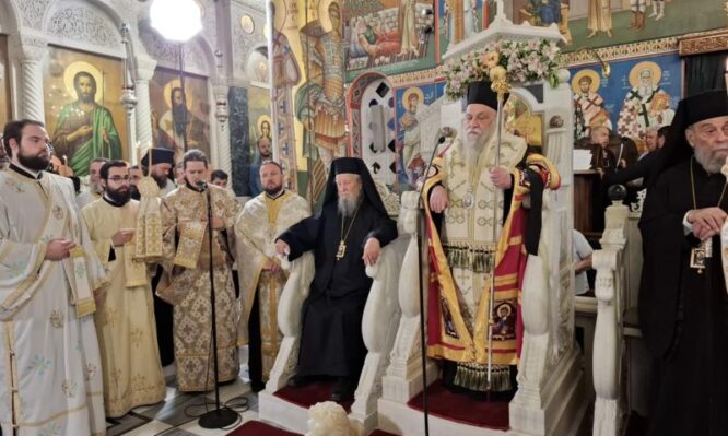 Στον Εσπερινό χοροστάτησε και κήρυξε τον θείο λόγο ο Σεβασμιώτατος Μητροπολίτης Γρεβενών κ. Δαβίδ, συγχοροστατούντων των Σεβασμιωτάτων Μητροπολιτών Καρυστίας και Σκύρου κ. Σεραφείμ, Ειρηνουπόλεως κ. Νικάνδρου, Κορίνθου κ. Διονυσίου, Γόρτυνος και Μεγαλοπόλεως κ. Νικηφόρου, του Θεοφιλεστάτου Επισκόπου Σκοπέλου κ. Νικοδήμου και του Σεβασμιωτάτου Ποιμενάρχου μας, Μητροπολίτου Χαλκίδος κ. Χρυσοστόμου.