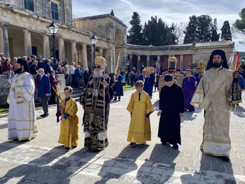 Στην λιτανεία συμμετείχαν όλες οι φιλαρμονικές της Κέρκυρας, μαθητές, πρόσκοποι και οι αρχές του τόπου.