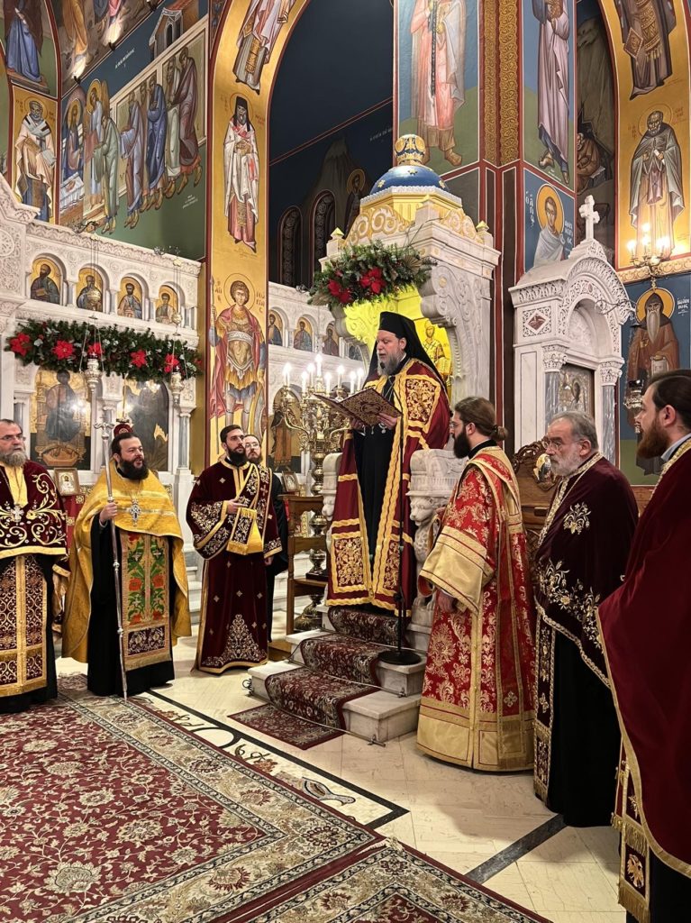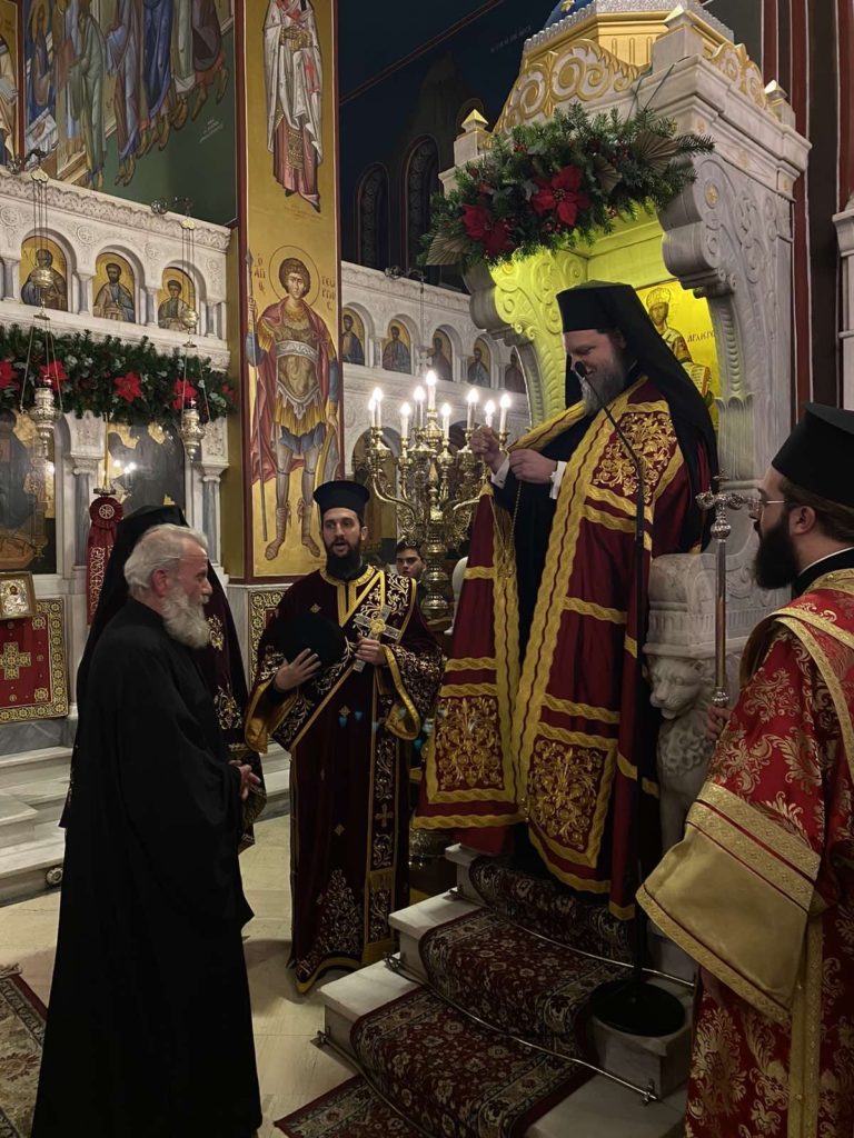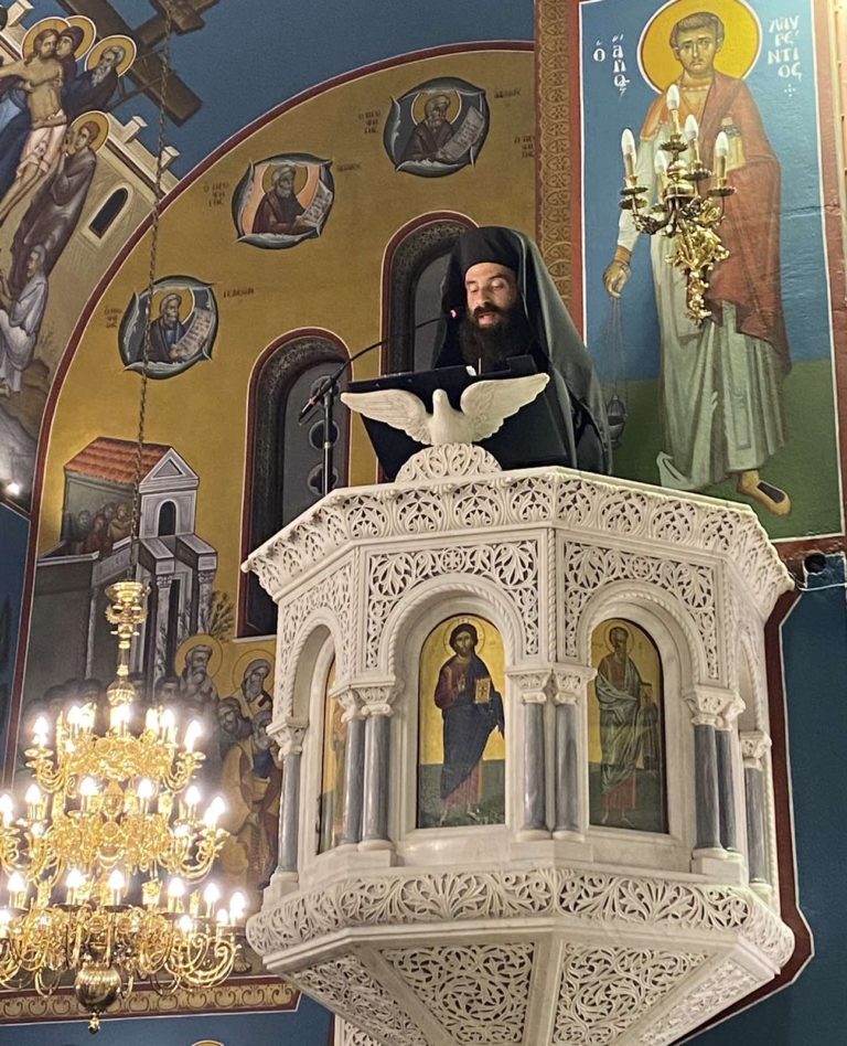 Τον θείο λόγο κήρυξε ο Πανοσιολ. Αρχιμανδρίτης Νήφων Βλυσίδης, προϊστάμενος του Ιερού Ναού Αγίας Μαρίνης Ν. Φιλαδελφείας, οποίος αναφέρθηκε στο θεολογικό περιεχόμενο και στο βαθύτερο νόημα της Γεννήσεως του Σωτήρος Χριστού για τον άνθρωπο.