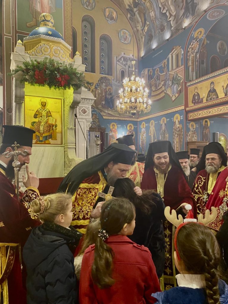 Ακολούθως, ο Σεβασμιώτατος απηύθυνε λόγους αγάπης και πατρικές ευχές για καλά και ευλογημένα Χριστούγεννα, ενώ παιδικές χορωδίες έψαλαν τα παραδοσιακά κάλαντα.