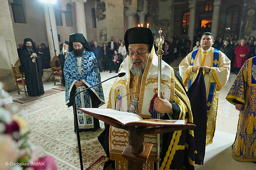 Χοροστάτησε ο Σεβασμιώτατος Μητροπολίτης Μεσσηνίας κ. Χρυσόστομος, συγχοροστατούντων του Σεβασμιωτάτου Μητροπολίτου Σμύρνης κ. Βαρθολομαίου, του Θεοφιλεστάτου Επισκόπου Λαρίσης κ. Μωυσή (Πατριαρχείου Αντιοχείας) και του οικείου Ποιμενάρχου Σεβασμιωτάτου Μητροπολίτου Βεροίας κ. Παντελεήμονος.