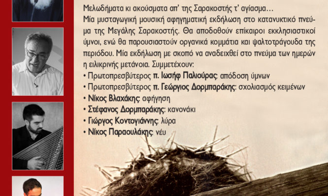 Μία μυσταγωγική μουσική αφηγηματική εκδήλωση στο κατανυκτικό πνεύμα της Μεγάλης Σαρακοστής.