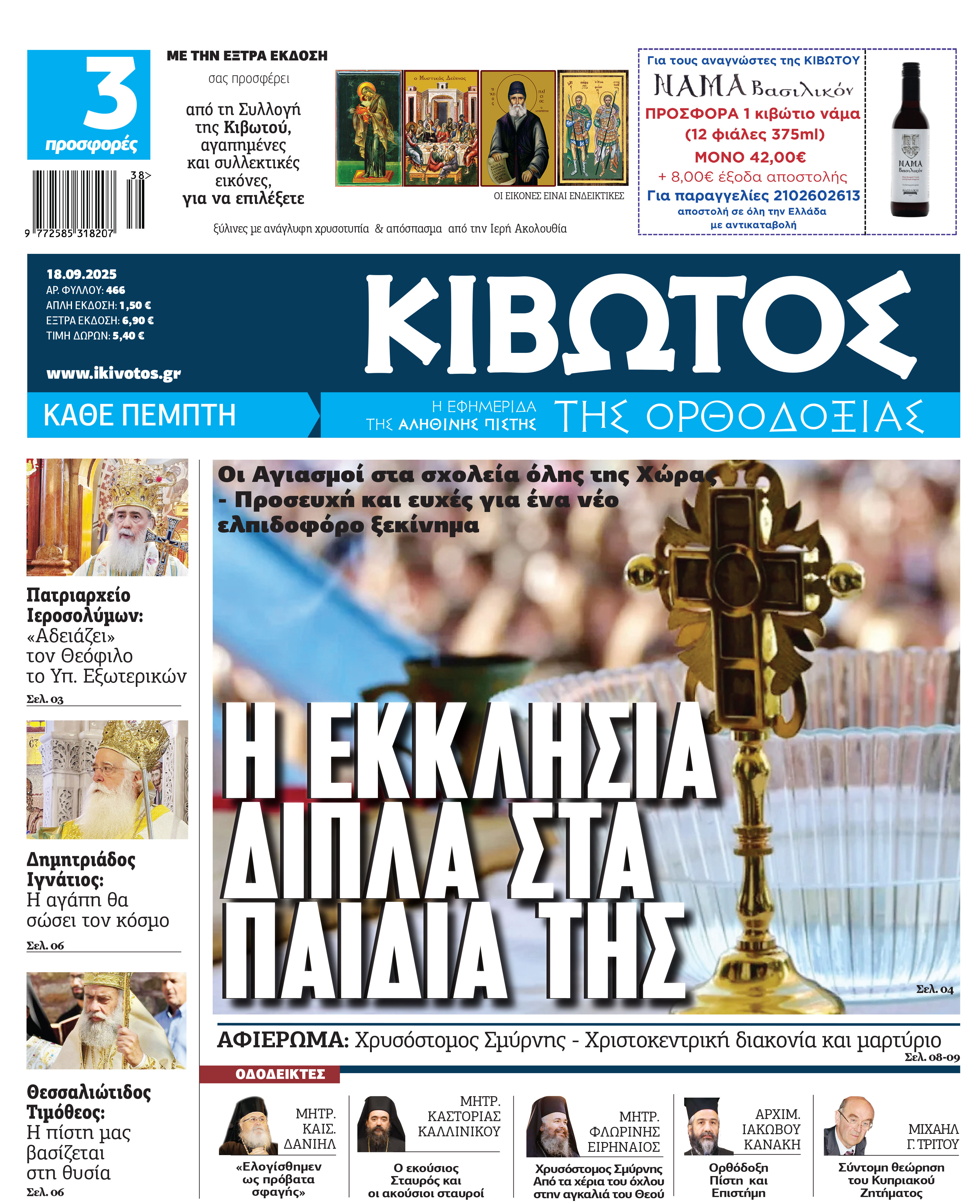 Μη χάσετε σήμερα, Πέμπτη, 18 Σεπτεμβρίου, την Κιβωτό της Ορθοδοξίας