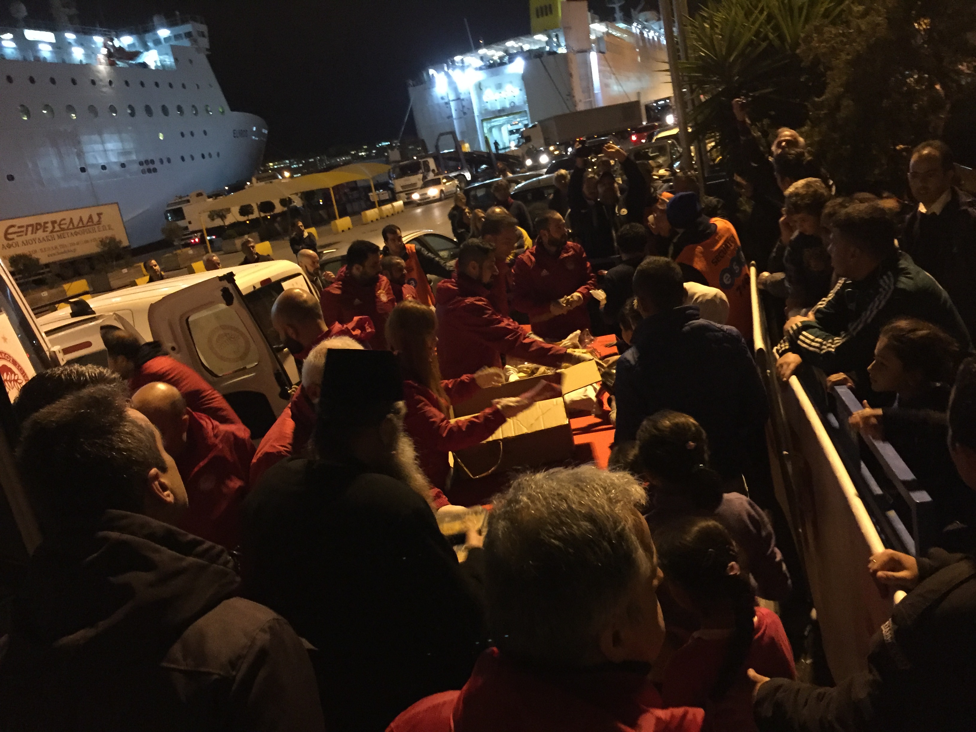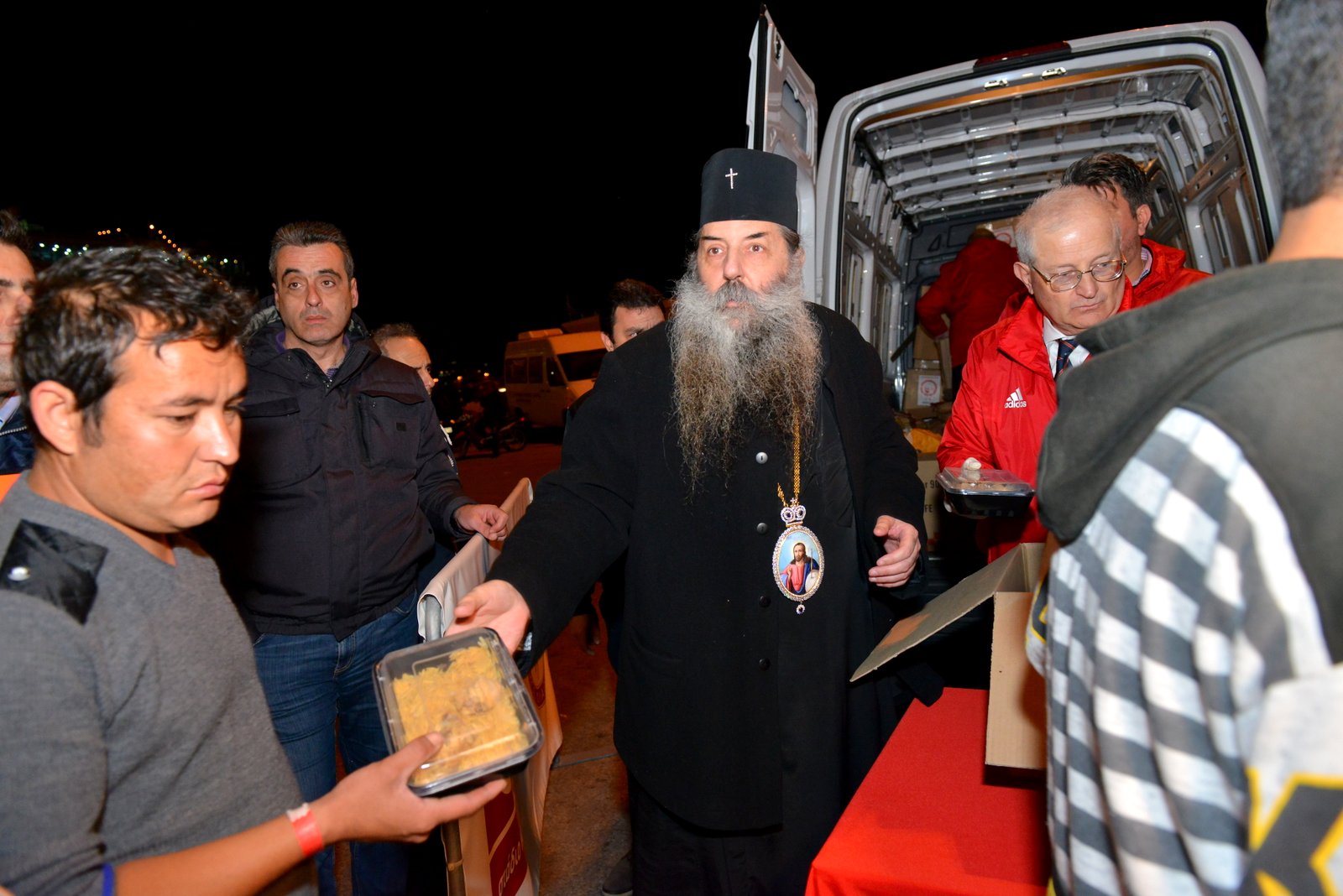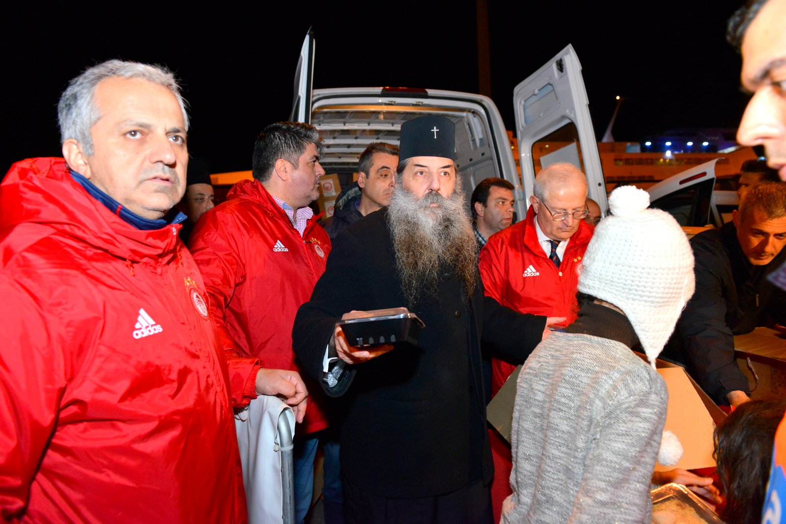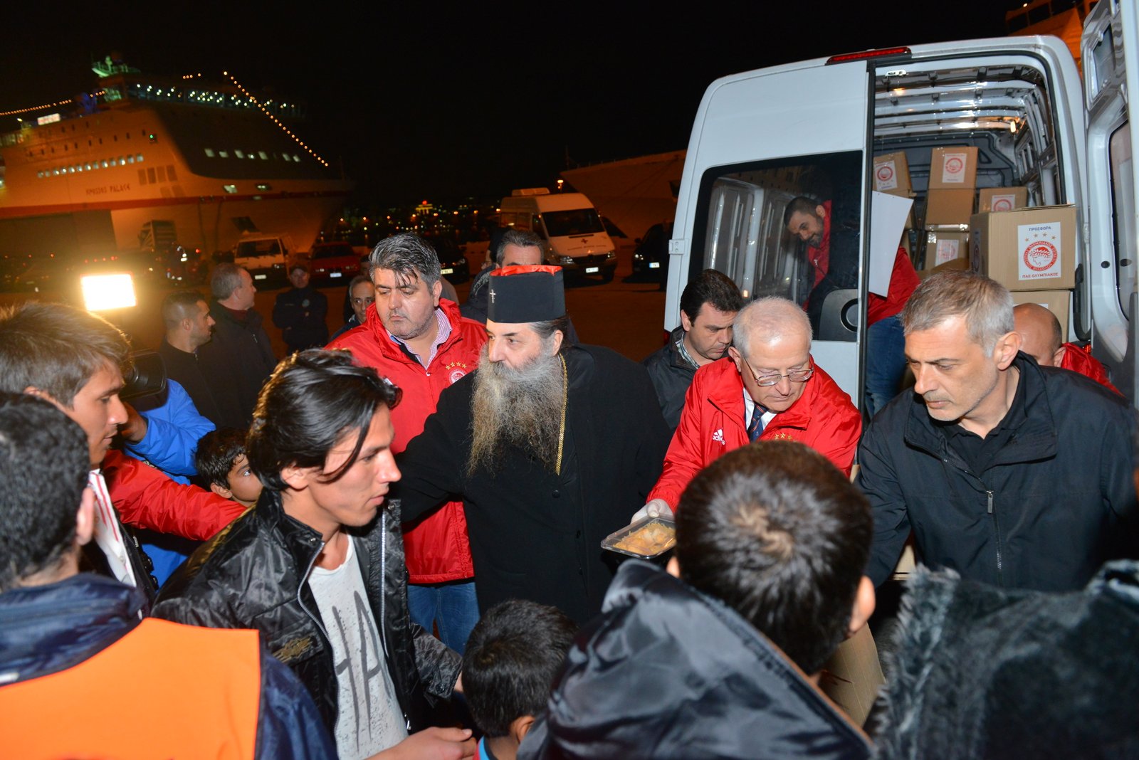 Σε μία κοινή προσπάθεια με τον Δήμαρχο Πειραιώς κ.Ιωάννη Μώραλη και τον Πρόεδρο της ΠΑΕ Ολυμπιακός κ.Ευάγγελο Μαρινάκη, ο Σεβασμιώτατος προσέφερε μερίδες φαγητού και είδη πρώτης ανάγκης σε συνανθρώπους μας οι οποίοι βιώνουν τις τραγικές συνέπειες ενός προσφυγικού δράματος.
