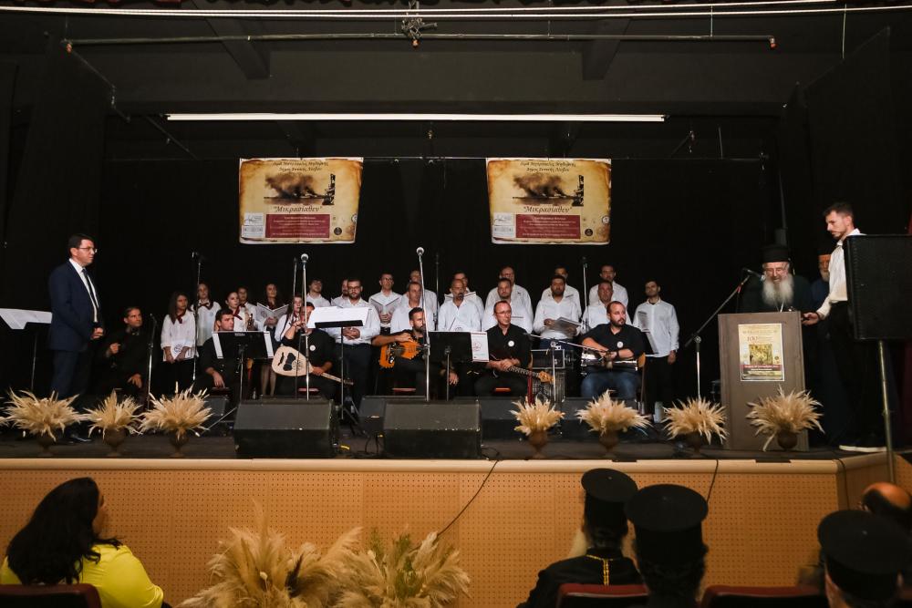 Στην μουσική εκδήλωση με τίτλο: «Μικρασίαθεν», η οποία παρουσιάστηκε στο Δημοτικό Θέατρο Καλλονής και η οποία τελεί υπό την αιγίδα της Εκκλησίας της Ελλάδος στο πλαίσιο της επετείου των 100 ετών από την Μικρασιατική Καταστροφή, διοργάνωσε η Ιερά Μητρόπολη Μηθύμνης, σε συνεργασία με την Γενική Γραμματεία Αιγαίου και Νησιωτικής Πολιτικής, η Περιφέρεια Βορείου Αιγαίου (Αντιπεριφέρεια Πολιτισμού) και ο Δήμος Δυτικής Λέσβου παραβρέθηκαν ο οικείος Ποιμενάρχης, Σεβασμιώτατος Μητροπολίτης Μηθύμνης κ. Χρυσόστομος, ο Σεβασμιώτατος Μητροπολίτης Φθιώτιδος κ. Συμεών, Ιδρυτής και Πρόεδρος του Ωδείου, ο Δήμαρχος Δυτικής Λέσβου κ. Ταξιάρχης Βέρρος, η Αντιδήμαρχος Πολιτισμού του Δήμου Δυτικής Λέσβου κ. Ζαχαρούλα Ιωακείμ και ο Αντιδήμαρχος Πολιτισμού του Δήμου Μυτιλήνης κ. Παναγιώτης Τσακίρης, ο κ. Μιχαήλ – Άνθιμος Δήσσος ως εκπρόσωπος του Περιφερειάρχη Βορείου Αιγαίου κ. Κωνσταντίνου Μουτζούρη, ο Διοικητής της 98 ΑΔΤΕ Υποστράτηγος Γρηγόριος Μπουτλιάκης, ο Γενικός Αστυνομικός Διευθυντής ΕΛ.ΑΣ Βορείου Αιγαίου, εκπρόσωποι άλλων φορέων της νήσου και μέγα πλήθος κόσμου.
