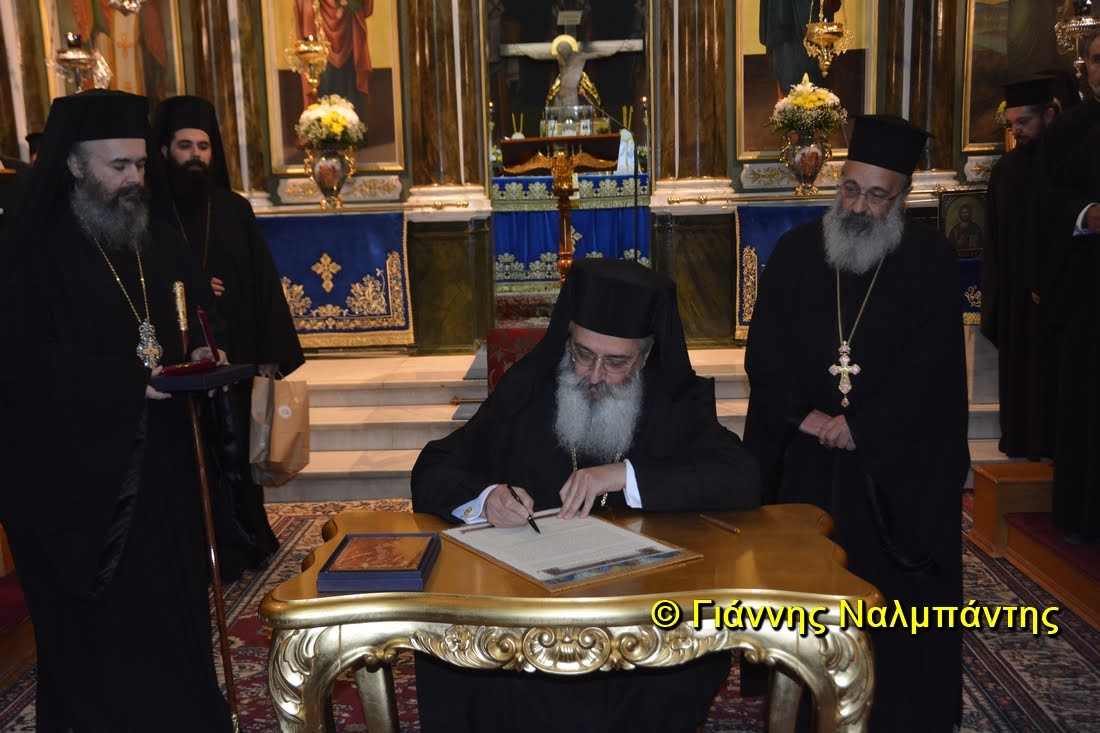 Αμέσως μετά ακολούθησαν ευχετήριες προσφωνήσεις από τον Περιφερειάρχη κ. Μέτιο και τον Δήμαρχο της πόλεως κ. Ζαμπούκη και η υπογραφή της Πράξεως της ανακηρύξεως του Ιωβηλαίου Έτους από τους τρεις Μητροπολίτες, τον Πρωτοσύγκελλο και τον Γενικό Αρχιερατικό Επίτροπο της Μητροπόλεως.