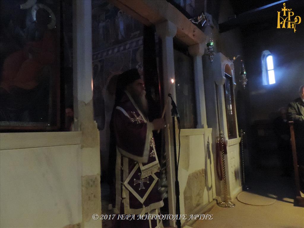 Ιερουργούντος του Σεβασμιωτάτου Μητρόπολίτου Άρτης κ. Καλλινίκου, τελέσθηκε η πρώτη Θεία Λειτουργία των Προηγιασμένων Τιμίων Δώρων, στην Ιερά Μητρόπολή μας, στον Ιερό Ναό της Πολιούχου της πόλεως μας, Αγίας Θεοδώρας της Βασιλίσσης.