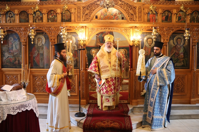 Ερμηνεύοντας, προηγουμένως, ο Σεβασμιώτατος την αναγνωσθείσα ευαγγελική περικοπή, μεταξύ άλλων, είπε·«Σε μία κοινωνία που τα υλικά αγαθά λατρεύονται ως θεότης από πλούσιους και πτωχούς ο λόγος του Κυρίου σήμερα έρχεται να μας μιλήσει ότι η απεξάρτηση από όλα αυτά δίδει στον άνθρωπο την προοπτική της αιώνιας ζωής και της Βασιλείας των Ουρανών. Ο πραγματικός χριστιανός είναι και φιλόθεος και φιλάνθρωπος. Αν δεν ζήσουμε σε κοινωνία με τον Θεό και τον συνάνθρωπό μας δεν θα σωθούμε, έστω και αν φαινόμεθα ότι είμεθα εγκρατείς, ευγενείς ή ότι έχουμε πολλές αρετές. Αυτήν την φιλοθεΐα και την φιλανθρωπία την βιώνουμε πρωτίστως στον λατρευτικό χώρο. Την ζουν οι μοναχοί που ζουν ευαγγελικά. Την ζουν και οι αγωνιστές χριστιανοί που βιώνουν στην καθημερινότητα της ζωής τους την συνάντηση τους με τον άλλο ως κοινωνία με τον Θεό… Η Ορθοδοξία δεν ελέγχει τον πλούτο, ούτε δικαιώνει την φτώχεια. Δεν θα σωθεί ο φτωχός λόγω της φτώχειας του, ούτε ο πλούσιος θα καταδικαστεί λόγω του πλούτου του. Όλα εξαρτώνται από την εξάρτηση που έχει ο καθείς από τα υλικά αγαθά και πόσο παραδομένος είναι σε αυτά. Η Χάρις του Αγίου Πνεύματος απαλλάσσει τον πιστό από το πάθος της φιλαργυρίας και έτσι αυτός παραδίδεται ολοκληρωτικά στον Θεό και τον αδελφό, κάτι που μπορούν να απολαύσουν πλούσιοι και φτωχοί».