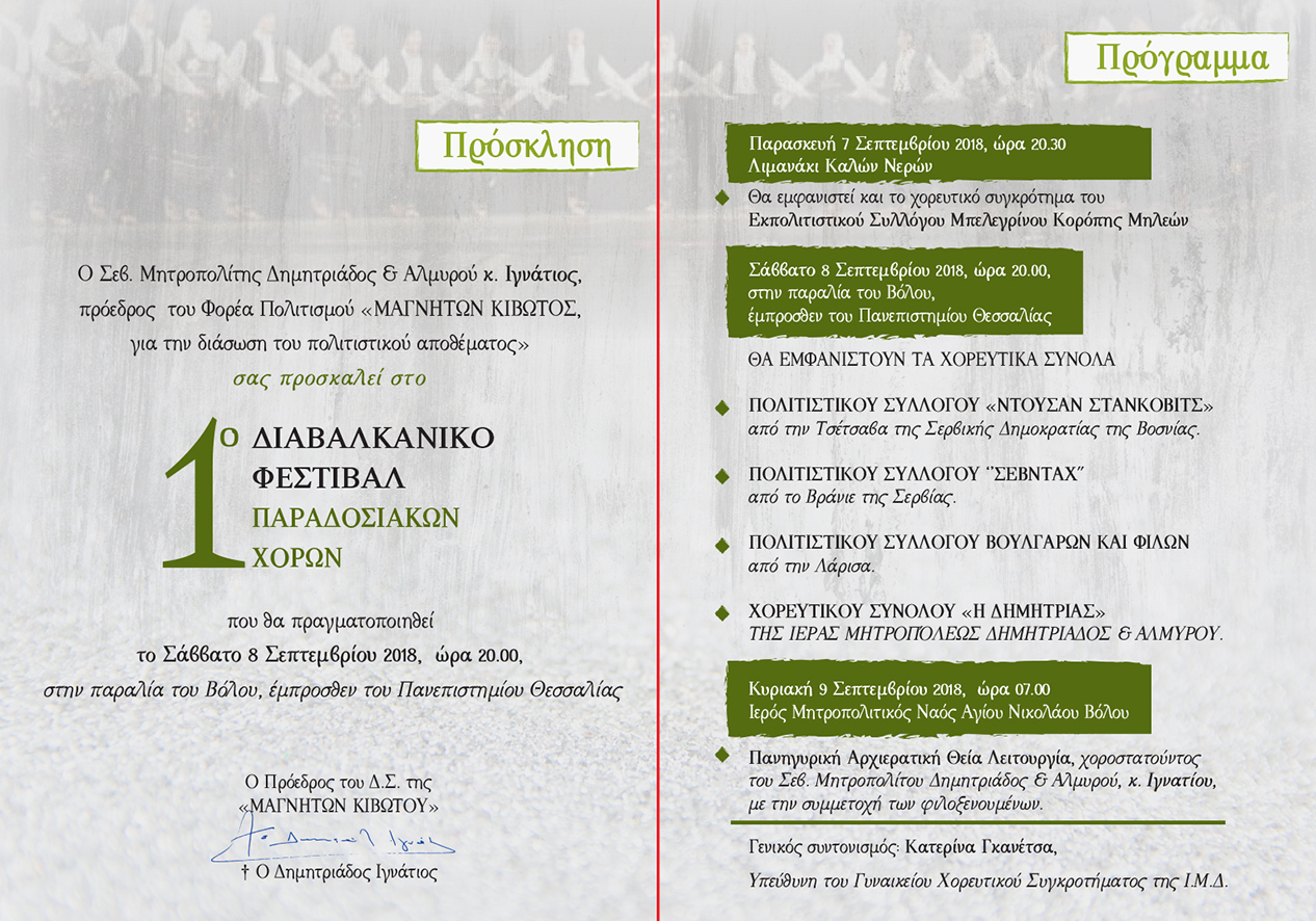 Μητρόπολη Δημητριάδος: 1ο Διαβαλκανικο Φεστιβάλ Παραδοσιακών Χορών