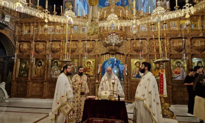 Την Τρίτη 13 Μαΐου πραγματοποιήθηκε βραδινή θεία Λειτουργία στον Μητροπολιτικό Ναό Εισοδίων της Θεοτόκου Δράμας για τις μαθήτριες και τους μαθητές που σε λίγες μέρες θα αγωνιστούν στις ενδοσχολικές και πανελλήνιες εξετάσεις.
