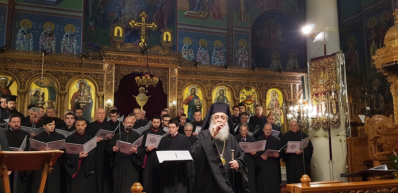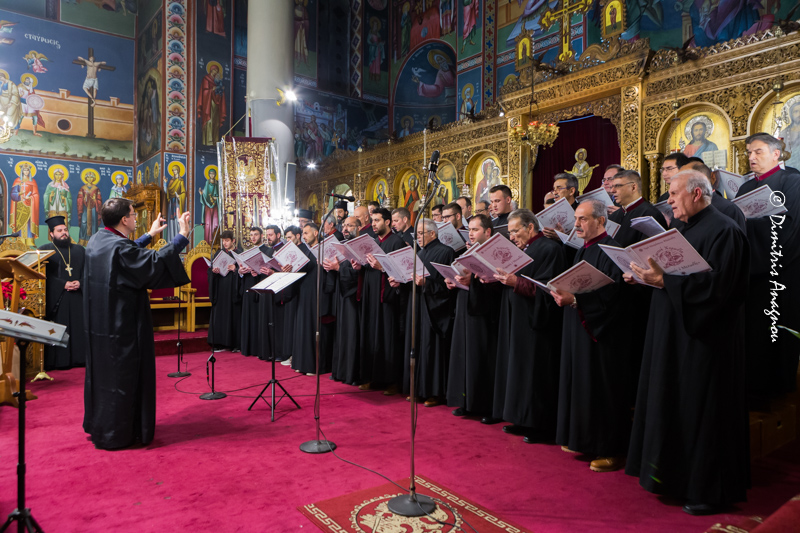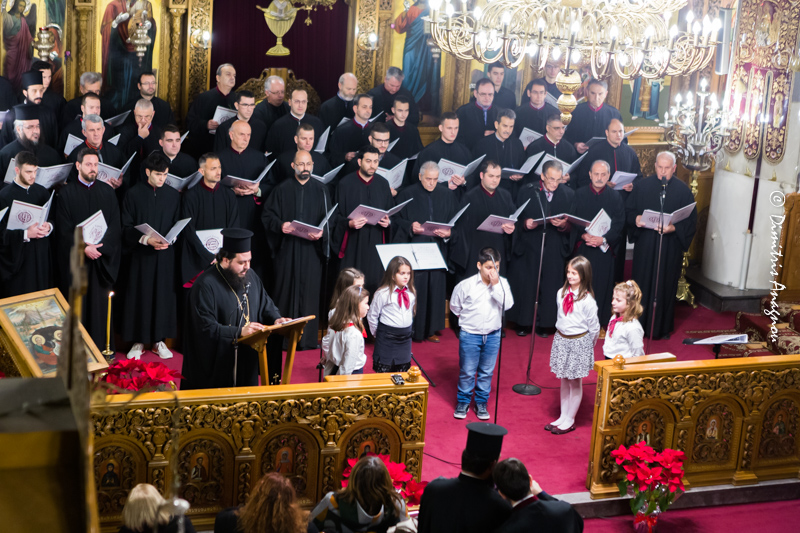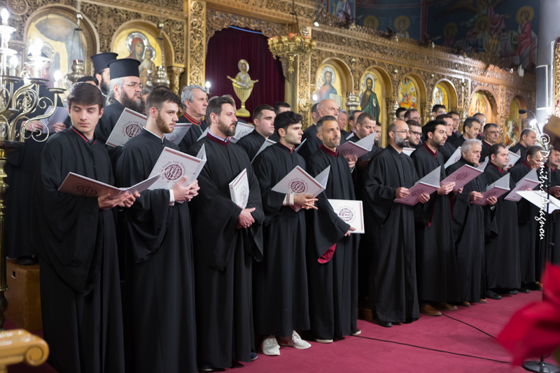Πολυμελής Βυζαντινή Χορωδία της Σχολής Βυζαντινής Μουσικής της Ιεράς Μητροπόλεως Φθιώτιδος «Γερμανός ο Μελωδός», υπό την καθοδήγηση του Διευθυντού και Πρωτοψάλτου κ. Ανδρέου Ιωακείμ απέδωσε θαυμάσια επίκαιρους Χριστουγεννιάτικους ύμνους, τους οποίους προλόγιζε ο Πανοσιολογιώτατος Αρχιμανδρίτης π. Αμβρόσιος Αναστασίου, Καθηγούμενος της Ιεράς Μονής Αντινίτσης, σχολιάζοντας με τρόπο καταληπτό τα ιερά κείμενα των ύμνων στην βάση των Πατέρων της Εκκλησίας μας.