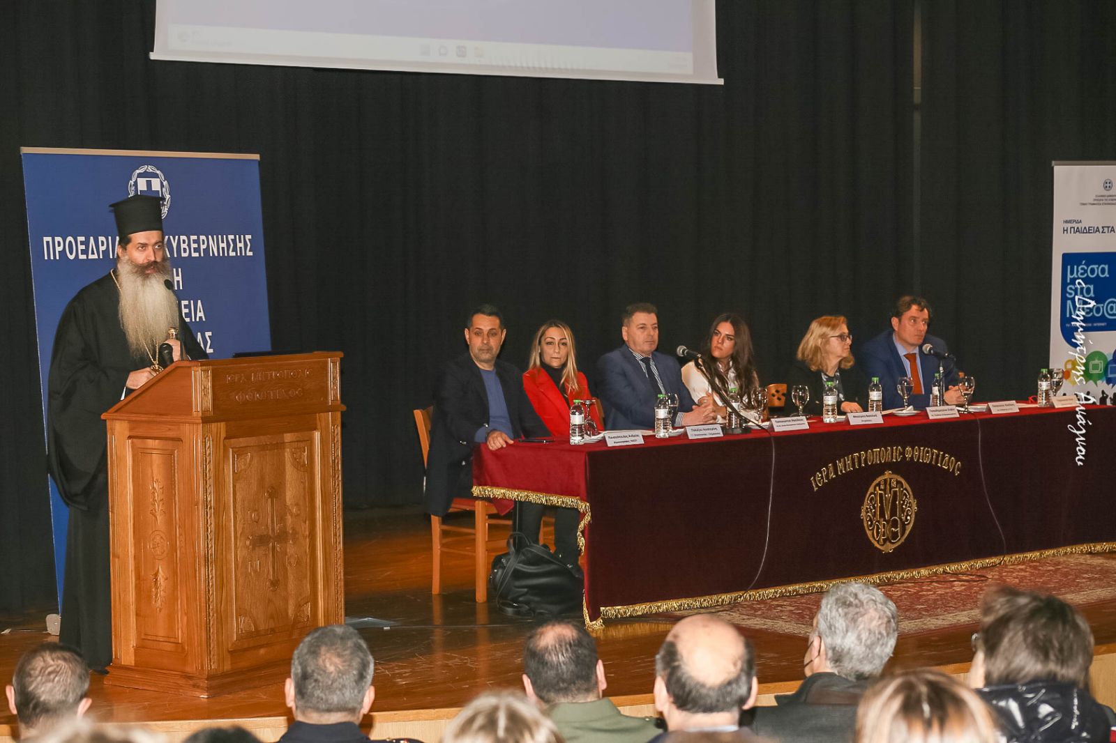 Με μεγάλη επιτυχία και συμμετοχή εκπαιδευτικών και μαθητών στο πλαίσιο της Εορτής των Τριών Ιεραρχών, διεξήχθη στη Λαμία η ημερίδα με θέμα «Παιδεία στα Μέσα» που διοργάνωσε η Γενική Γραμματεία Επικοινωνίας και Ενημέρωσης σε συνεργασία με την Ιερά Μητρόπολη Φθιώτιδας, στο πλαίσιο των εκδηλώσεων της Ιεράς Μητροπόλεως για την εορτή των Τριών Ιεραρχών και με τη συμβολή της Περιφερειακής Διεύθυνσης Στερεάς Ελλάδας και των Διευθύνσεων Πρωτοβάθμιας και Δευτεροβάθμιας Εκπαίδευσης Ν. Φθιώτιδας, με τη συμμετοχή του Σεβασμιωτάτου Μητροπολίτη Φθιώτιδος κ. Συμεών, του Υφυπουργού παρά τω Πρωθυπουργώ και Κυβερνητικού Εκπροσώπου, Γιάννη Οικονόμου και του Γενικού Γραμματέα Επικοινωνίας και Ενημέρωσης, Δρ. Δημήτρη Γαλαμάτη.
